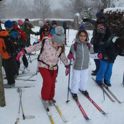 Quand les grands ont l'occasion d'expérimenter le ski de fond, les plus jeunes s'amusent, dans le pré du village, aux joies de la glisse !